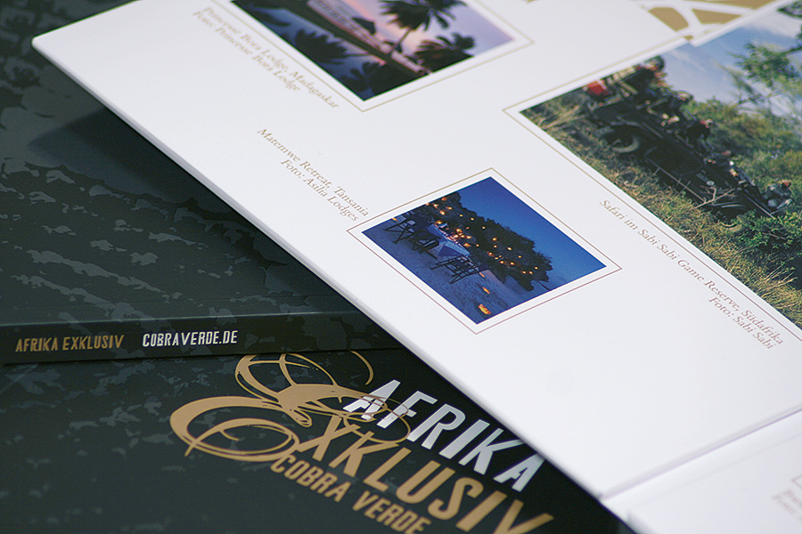 Design for our decades long client Cobra Verde Afrikareisen. This luxury travel agency offers tailormade individual tours to unique African destinations. We created an outstanding website with more than 1,500 sub-pages, we created the company’s corporate design, logo, brochures, flyers and even a 144 pages coffee table book, including exotic receipes from the travel countries.